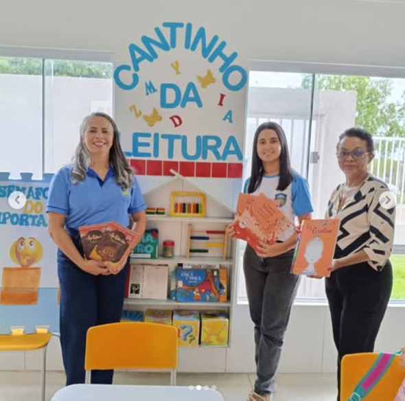 Durante a programação, também foi realizada a entrega de livros para os cantinhos de leitura das escolas da rede municipal, com foco na valorização da cultura afro-brasileira e no incentivo a práticas pedagógicas antirracistas.